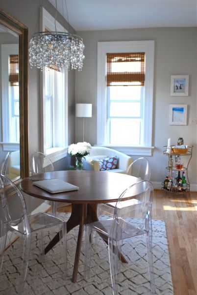 Стулья. Есть один хитрый трюк, который не помогает расширить фактическую площадь, но делает кухню визуально больше. Купите стулья из прозрачного пластика. Они пропускают 90% света, благодаря чему внешне выглядят менее громоздкими, чем классические стулья.